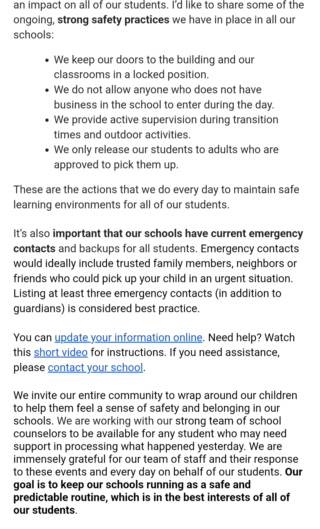 The district’s early response, made without access to the full factual record, coincided with a surge of community concern that children were being unlawfully detained. The later release of the transcript shows that those fears were not supported by the facts as they are now known.