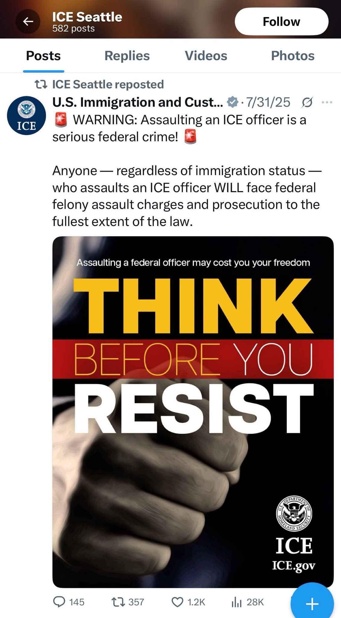 Photo Credit: ICE Seattle X.com post